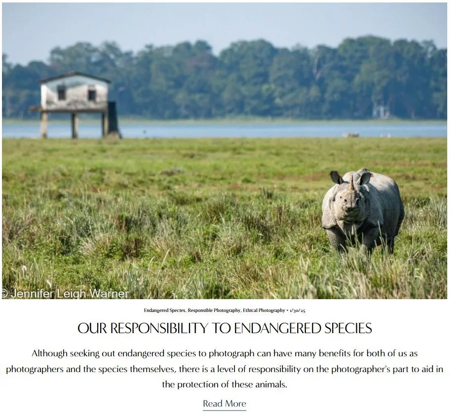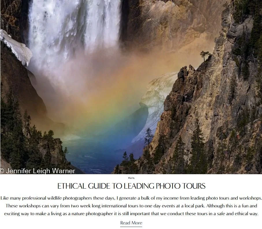 Jennifer has written a variety of articles on topics regarding ethical nature photography. Click on the article to view the whole story.