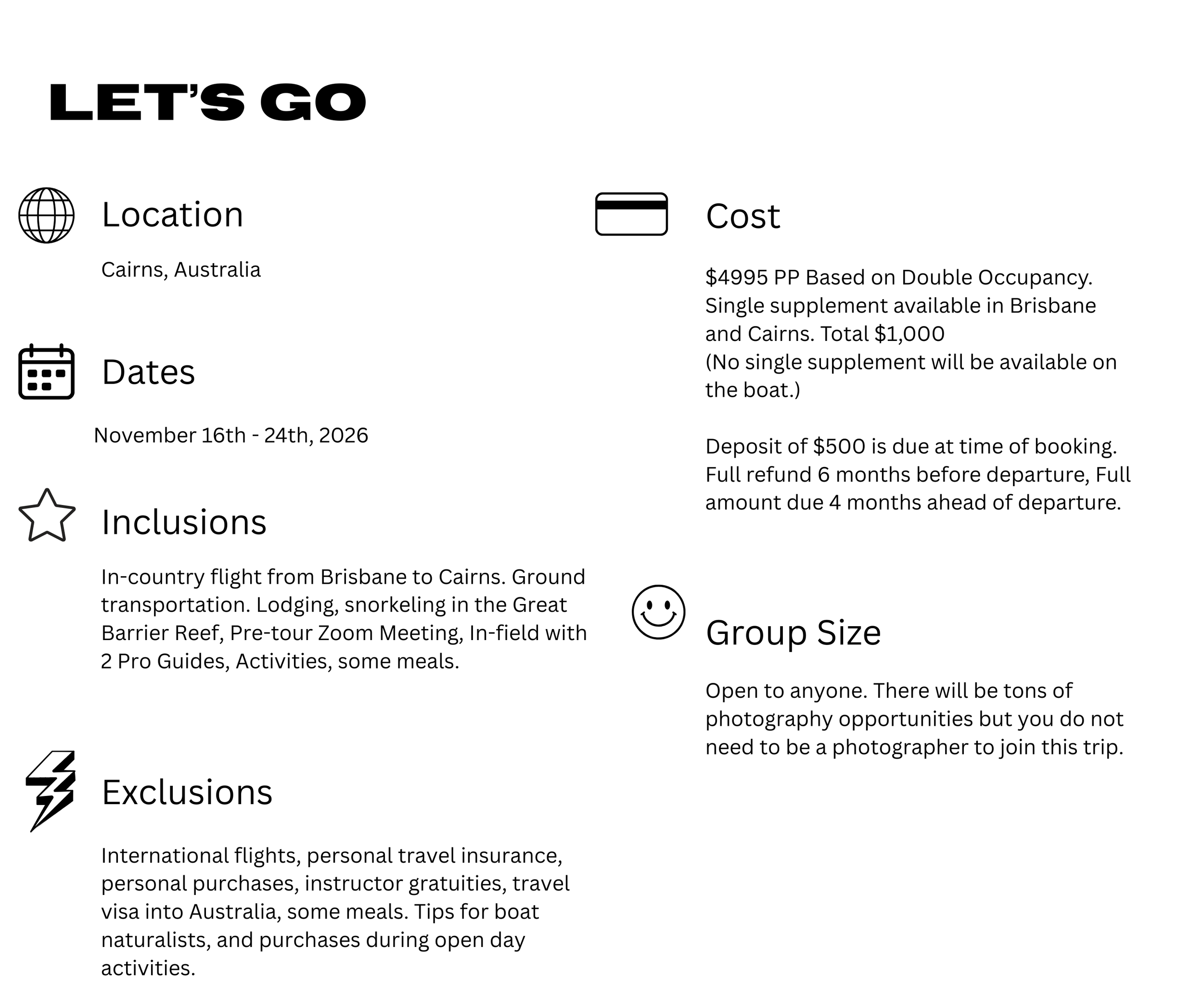 Day 2 - We will travel as a group to the airport for our flight to Cairns.