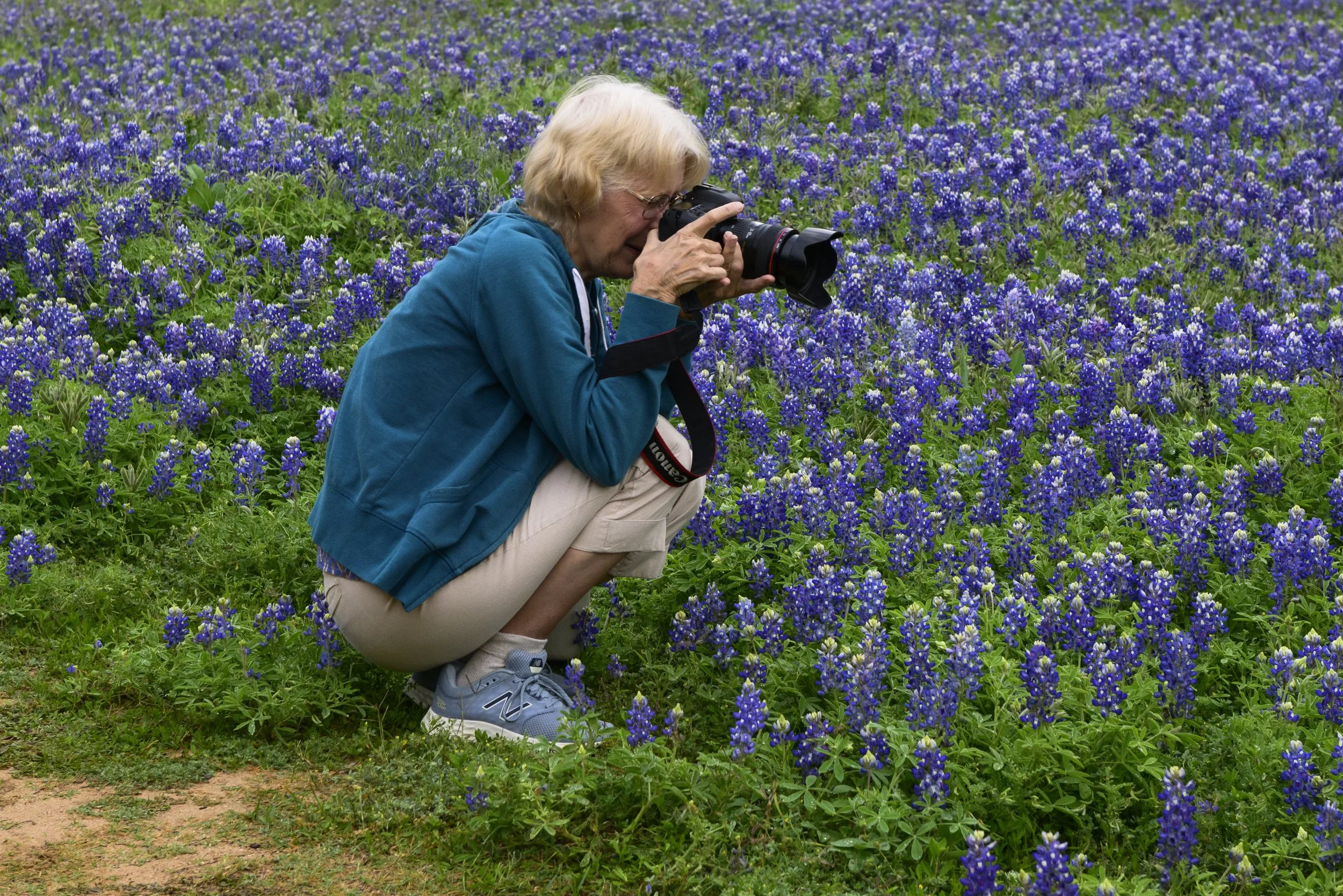 A guest photographs Texas Bluebonnets in the Texas Hill Country